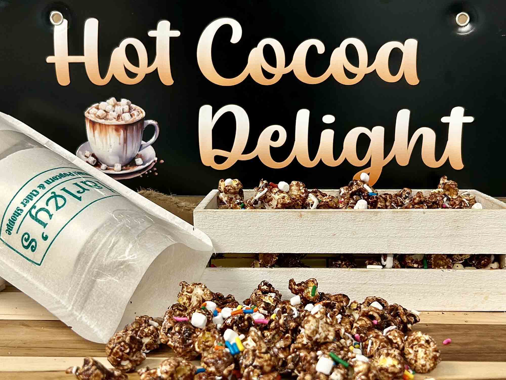 Delectable chocolate popcorn, topped with mini marshmallows and rainbow sprinkles…delightful!